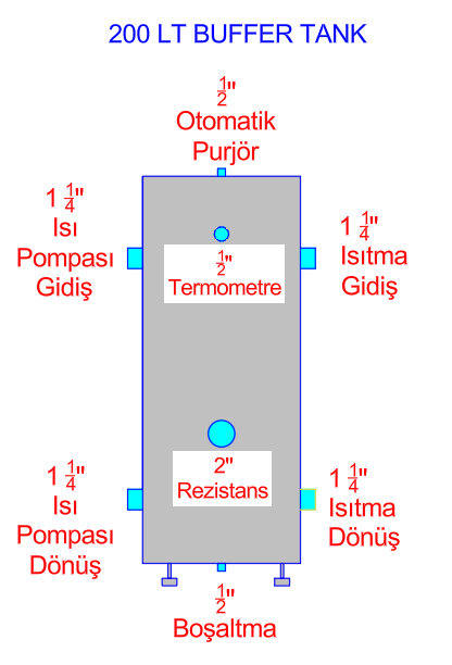 - Yapılacak projede buffer tank kullanımının gerekli olup olmadığı kullanılan ısı sistemine (radyatör, yerden ısıtma vb.), ısı pompasının büyüklüğüne ve sistemin tam konfigürasyonuna bağlıdır.