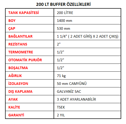 Buffer Tank 200 lt , Akümülasyon Tankı (Isı pompası uygulamaları içindir)