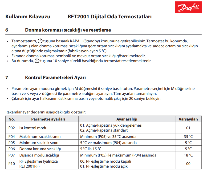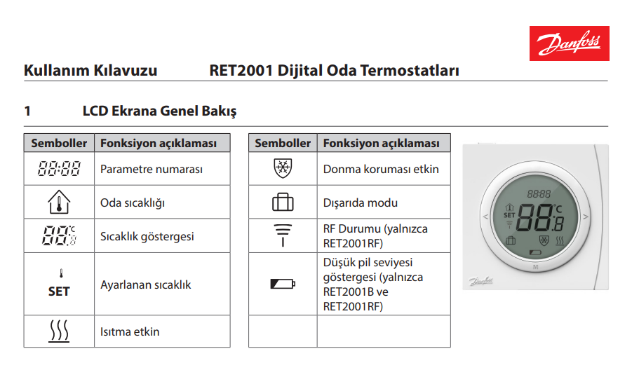 Danfoss RET2001B Kablolu Oda Termostatı
